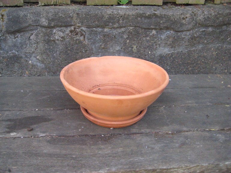 You begin by choosing a container. This can be anything you want, from a traditional flower pot you buy at your local garden store, to an old cooking pot. Just don’t forget to drill a hole in the bottom so water can drain out. I have fairy gardens in everything from flower pots to a colander, and an old tool box.